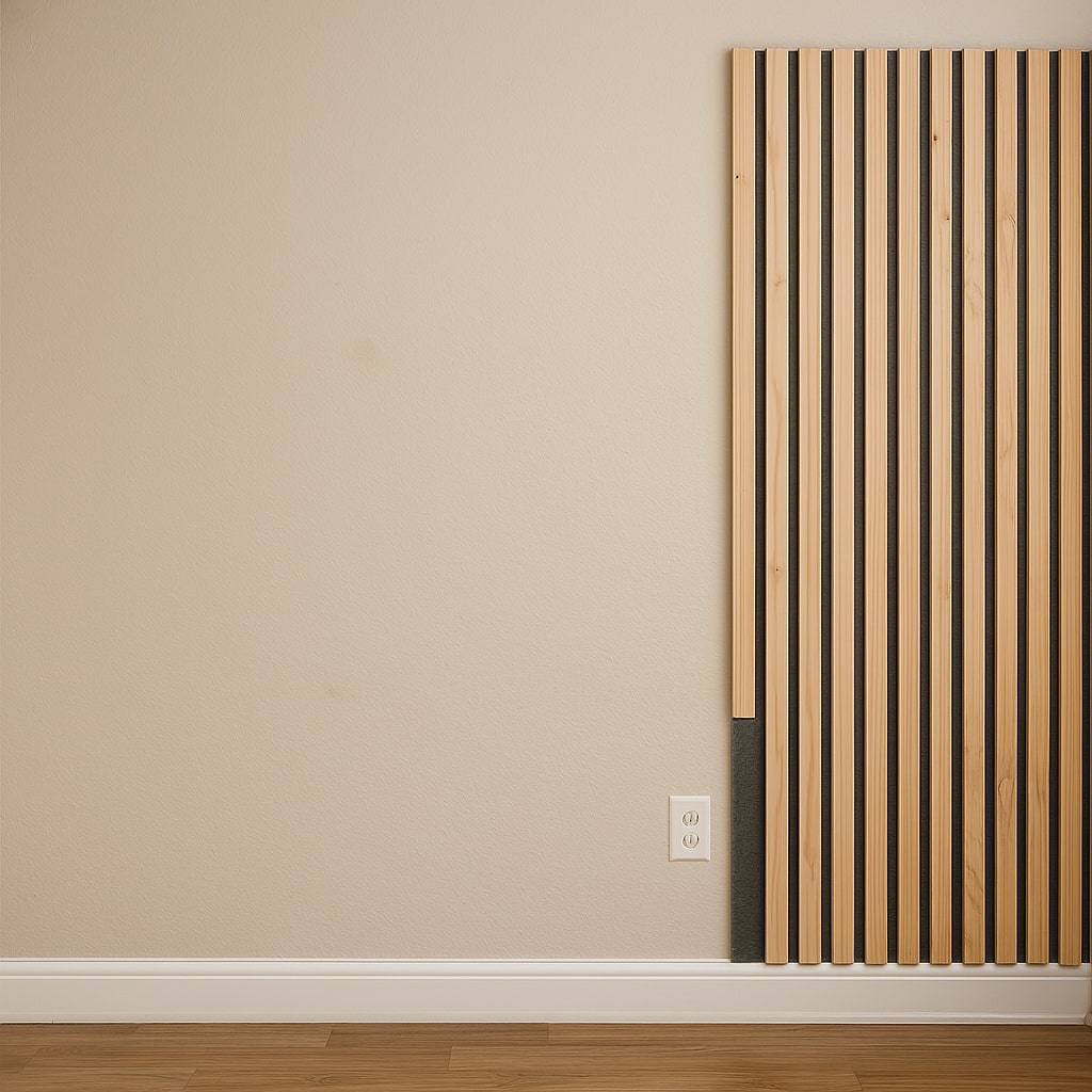 Stilj™ acoustic slat panels are lightweight, modular, and easy to install — making them perfect for DIY acoustic slat wall projects. Homeowners can achieve professional results with minimal tools by applying the panels to media walls, headboards, or small nooks.