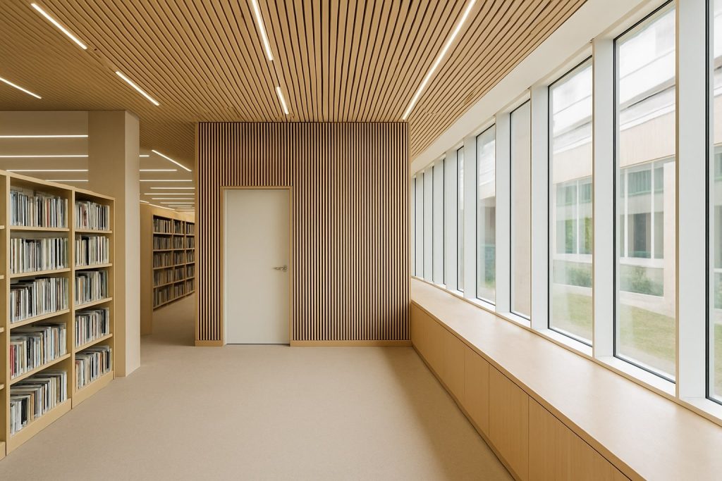 Batten panels installed on ceilings or accent walls extend the visual field while also softening noise. In spaces like entryways or shared lounges, slat timber ceilings help improve clarity and reduce ambient echo without compromising on appearance.